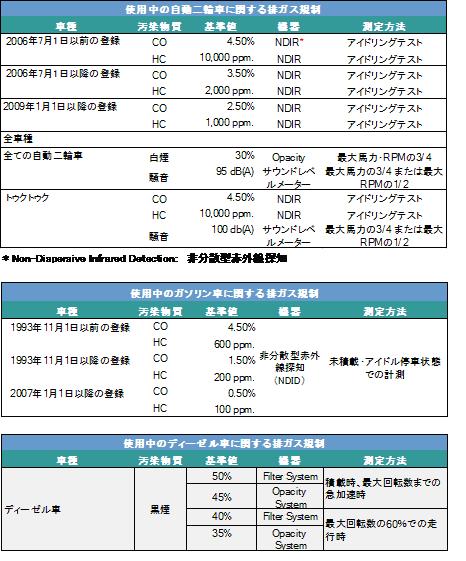 以下は、自動車に関する排ガス規制の概要です。 →拡大図