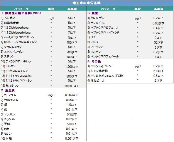 <表3>飲料用地下水に関する水質基準